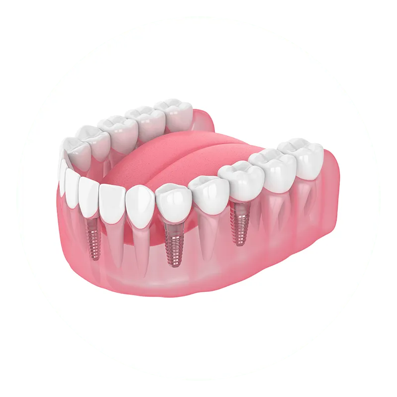 When it comes to replacing a full set of teeth we give our patients multiple options depending on their unique case, full mouth dental implants are the most popular and advanced way of replacing an entire jaw/arch and can sometimes be completed at our practice in just one day.